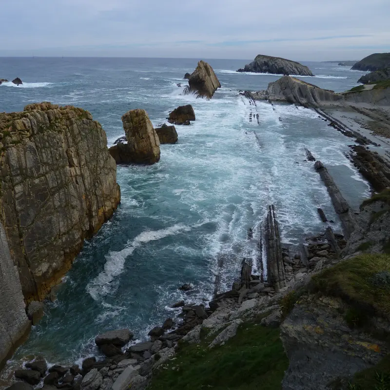 La Costa Quebrada es una franja costera de 20 km cerca de Santander, conocida por sus impresionantes formaciones rocosas y acantilados. Es un destino ideal para los aficionados al senderismo y la fotografía, con paisajes que combinan el mar y la montaña.