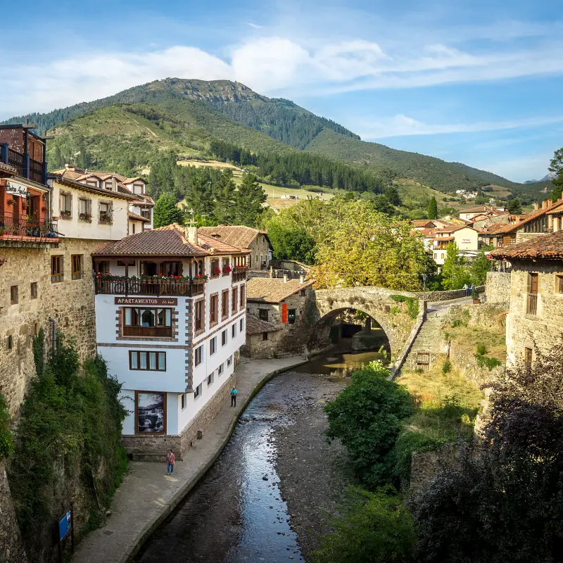 Situado en el corazón del Valle de Liébana, Potes es conocido como «la villa de los puentes» por sus numerosos puentes que cruzan el río Deva. Este pintoresco pueblo está rodeado de montañas y es un excelente punto de partida para explorar los Picos de Europa.